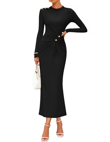 ZESICA Womens 2025 Fall Long Sleeve Mock Neck Bodycon Midi D...