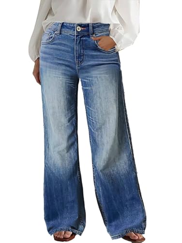 Flamingals Straight Wide Leg Jeans for Women Mid Waisted Cas...