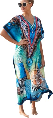 Womens Stylish Floral Silk Feeling Plus Size Caftans Turkish...
