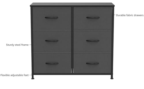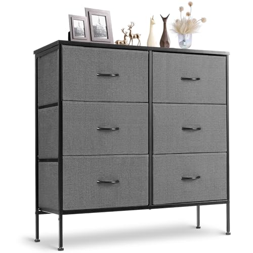 WLIVE Fabric Dresser for Bedroom 6 Drawer Double Dresser Sto...