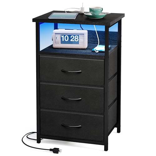 Fixwal Night Stand with Charging Station LED Nightstand with...