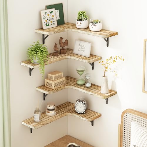 Fixwal Corner Floating Shelves Wall Mounted Corner Shelf Set...