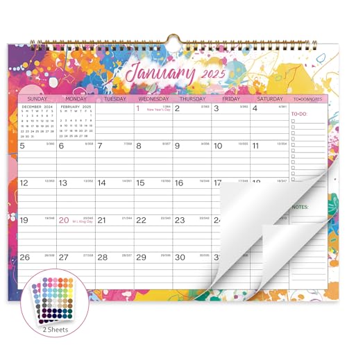 Vibrant Focus 2025-2026 wall calendar makes your life more regular fulfilling and exciting. The perfectly sized 8.5"" x 11"" calendar proves that calendars can be functional and decorative at the same time. The colorful design adds a relaxed and fresh feel to your office or home walls. Available in 12 unique designs that won't be repeated. Made for everyday use made of thick high-quality paper that writes legibly and prevents annoying ink bleed-through. Sturdy double-wire binding for a smooth page turning experience. 2 sheets of 96 colorful round stickers for better marking. Improving your productivity has never been easier and more unique! July 2025 - December 2026 at a glance - owning the 2025 calendar and seeing the dynamic year ahead. Each day section gives you plenty of space to jot down any appointments plans good ideas reminders and important events. The calendar consists of 18 sheets of paper. With this wall calendar you can enjoy planning in a relaxed style.