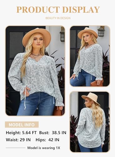 Eytino Women Plus Size Boho Floral Printed Tops Casual V Nec...