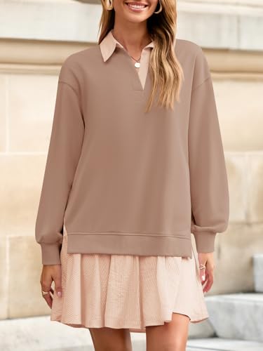HOTYD Long Sleeve Shirts for Women Oversized V Neck T Shirts...