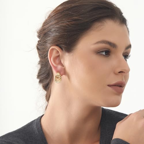 shinelab 14K Gold Plated Chunky Earrings for Women Knot Link Circle Geometric Drop Dangle Earrings Studs Trendy Jewelry for Women Price in USA