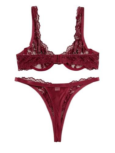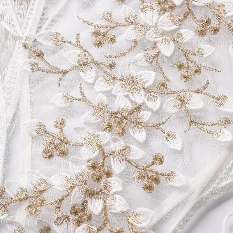 Lilosy Sexy Polka Dots Mesh Sheer Babydoll Chemise Lingerie Set Floral Lace Nightwear Women Deep V Neck Nightgown Sleepwear Slip NightDress with Thong 2 Piece Pink Small Price in USA