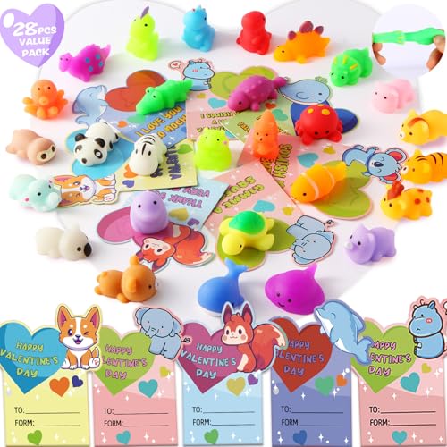 JOYIN 28 Packs Mochi squishy toys with Valentine Cards and F...