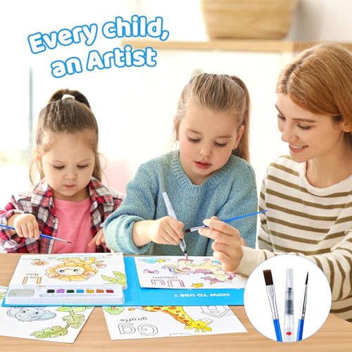 Paint with Water Coloring Books for Toddlers Watercolor Painting Sets for Kids Ages 3-4 4-8 26 Pages Animal Alphabets Arts and Crafts Birthday Present for Boys Girls (Blue)