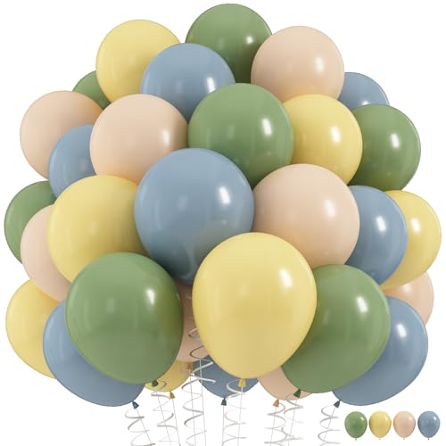 Sage Green Dusty Blue Yellow Balloons Set 60Pcs 12 Inch Oliv...