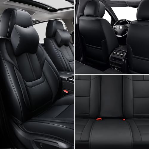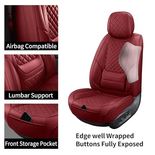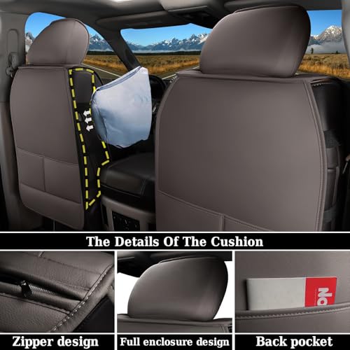 Why choose Hoozoom Leather Seat Covers for Cars? These seat covers for trucks are made of high quality Faux leather with air holes which is very breathable soft durable waterproof and wear-resistant. Universal car seat covers are compatible with most Cars SUV Truck and Pick-up. The seat covers use full-coverage protection design that effectively protect your seats from spills stains pet hairs dust scratches seat abrasion and indentations. Although the waterproof seat covers are fully coverage design it does not affect the original functional use of the car seat such as airbag seat belts armrests and seat adjustments. Notice: 1. The leather seat covers for suv will appear the creased during long transportation. BUT don't worry the crease will disappear after a few days. 2. There might be 1-3cm/ 0.3”-1.2\" error by manual measurement. 3. There might be a colour difference due to the different displays or lights. 4. If yo