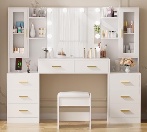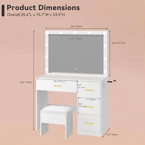 ARTETHYS Small Vanity Desk Set with Flip-top Mirror and Lights White Integrated Makeup Table for Small Space Compact Mini Dressing Table with Fold-up Panel and Storage Chair for Bedroom Price in USA