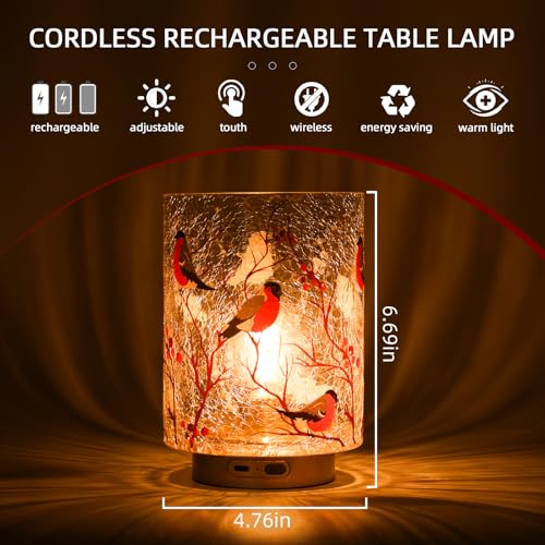 Rechargeable Battery Table Lamp Timer Handmade Crackle Glass Lamps with Two-Level Dimmer Emergency Cordless Lamp for Area No Plug Decorative Mood Light for Entryway/Corner/Bedroom/Bathroom(Red) Price in USA