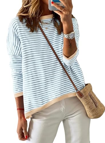 Dokotoo Women's Crewneck Striped Long Sleeve Pullover Sweate...