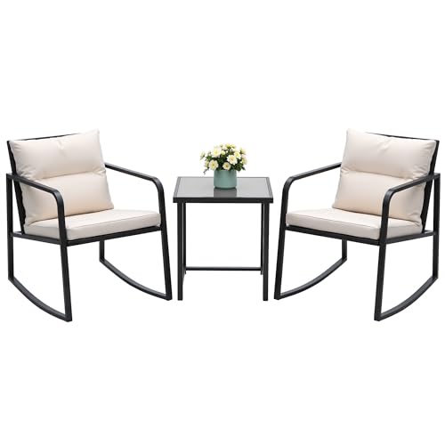 Devoko 943RBK 3 Piece Rocking Bistro Wicker Patio Outdoor Fu...