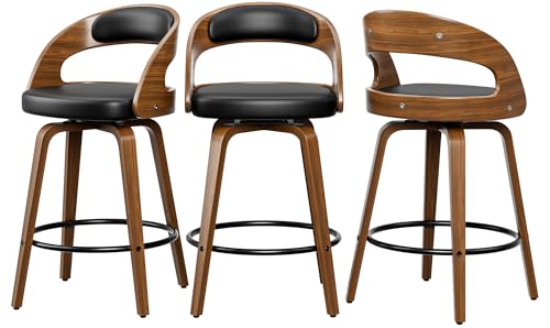 YaFiti Swivel Bar Stools with Backs 24"" Counter Height Bar Stools Set of 2 Fabric Upholstered Counter Bar Stools with Solid Wood Legs for Kitchen Island Home Bar Dark Gray Price in USA