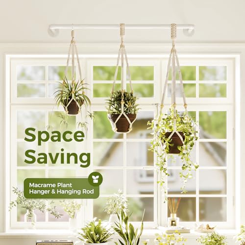 Bamworld Hanging Planters for Indoor Plants Plant Hanger Indoor Hanging Plant Holder Window Plant Shelves Metal Rod(Pot&Plant Not Included) 35.8in White