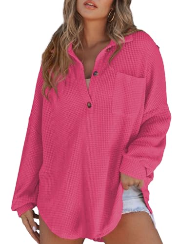 Astylish Ladies Waffle Knit Long Sleeve Tops Fashion Button ...