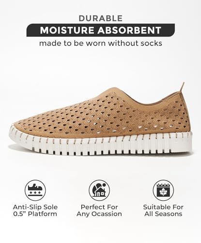 Project Cloud Sneakers for Women - Memory Foam Women Shoes & Womens Sneakers Non-Slip Work Shoes Women Lace Up Shoes for Women Footwear - Fashion Sneakers for Women 2024 (Serena Tan 6) Price in USA