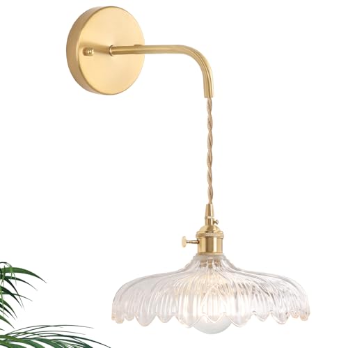 Shenmoyl Vintage 1-Light Wall Sconce Clear Flower Shade Patt...