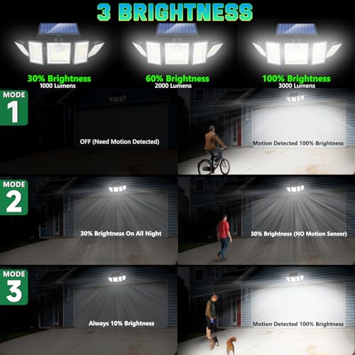 TECKNET 461 LED Solar Motion Lights Outdoor 300° Angle & 3 L...