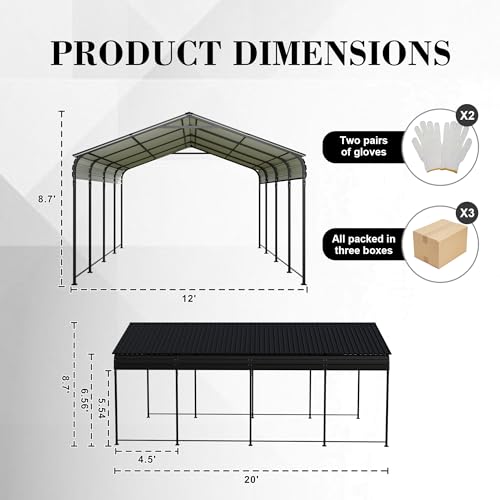 The 13x25ft carport is a compact yet sturdy solution for your vehicle boat or outdoor equipment. With its powder-coated steel frame and reinforced canopy it provides reliable protection against sun rain and wind. Perfect for smaller spaces this car port canopy is designed to fit in narrow driveways or backyards while offering a dependable shelter that keeps your belongings safe from the elements.