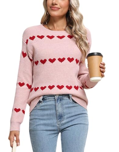 Alsol Lamesa Women's Cute Hearts Christmas Sweater Pullover Long Sleeve Crewneck Casual Knitted Sweaters Price in USA