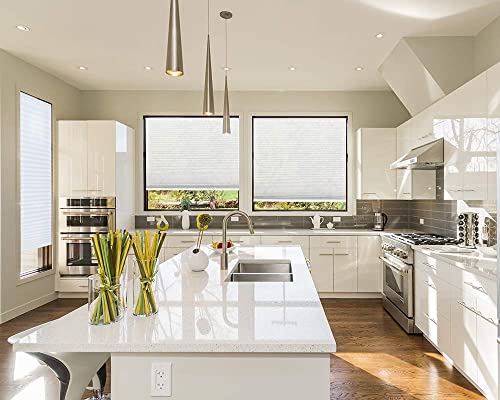 Pesilux 1\" Single Cell No Drill Top Down Bottom Up Cordless Cellular Window Shades Light Filtering & Blackout Blinds for Windows