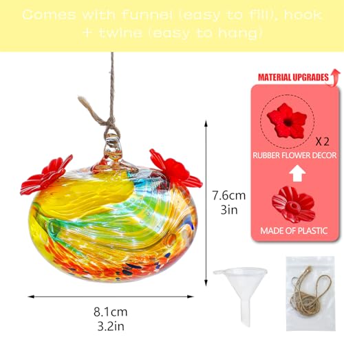 LUJII Hummingbird Feeder Hand Blown Glass Hummingbird Feeder...