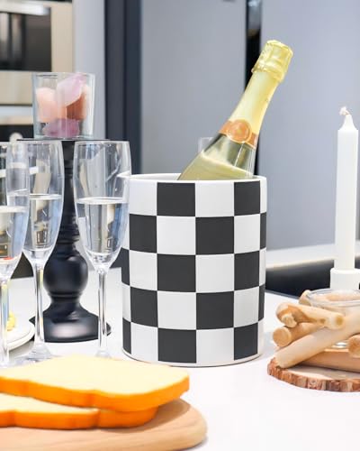 Swkien Utensil Holder,7.2 Inch Checkered Utensil Holder Ceramic Cooking Utensil Spoon/Spatula Holder for Countertop Kitchen Decor and Accessories for counte(Black) CWG001 Price in USA