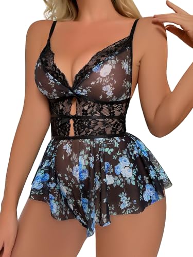 Lilosy Sexy Bows Floral Lace Mesh Babydoll Lingerie Sleepwea...