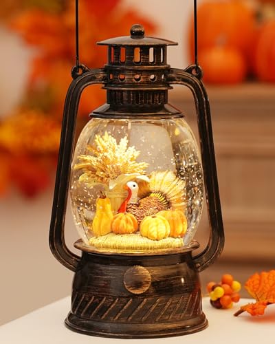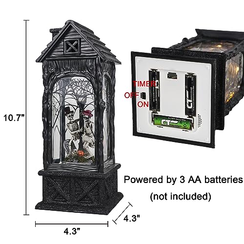10'' Halloween Snow Globe Lantern Lighted Musical Water Lantern Spooky Pumpkin and Witch' s Black Cat Combo with Swirling Glitter Battery Operated or USB Powered
