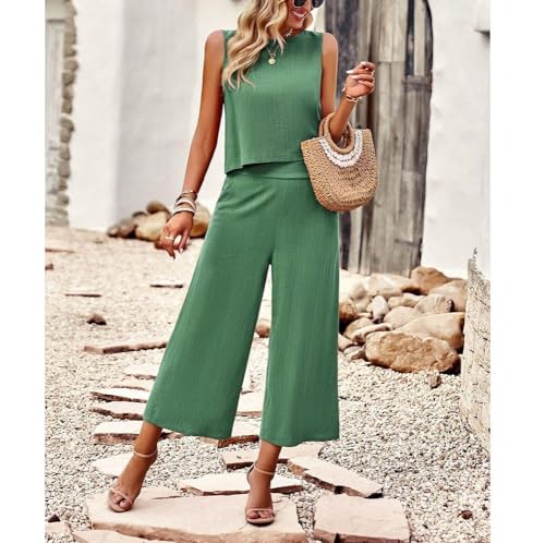 DMOYALA Two Piece Summer Outfits for Women Linen Pants Suits...