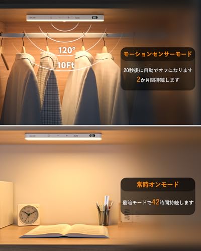 EZVALO 62 LEDs Under Cabinet Lighting 2000mAh LED Closet Lights with Remote 3 Color Temps Rechargeable Motion Sensor Lights Indoor Battery Operated Wireless Under Counter Lights for Kitchen 6 Pack