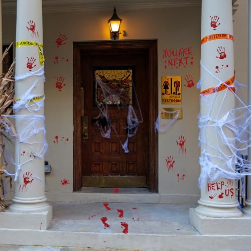 Get ready for spine-chilling scares and eerie thrills with our Bloody Footprint and Handprint Sticker Set! What Will You Get: 7 * chilling bloody footprint stickers with realistic gore 2 * creepy bloody handprint stickers 1* halloween restroom sign sticker 1 * “DO NOT ENTER” sticker 1 * “DO NOT LEAVE” sticker These Halloween window clings are ideal for creating a frightful ambiance whether on floors stairs sidewalks or any smooth surface. Made from durable waterproof material these stickers are perfect for both indoor and outdoor use. Reusable and easy to apply they add a terrifying touch to your Halloween setup and ensure a truly spooky experience!