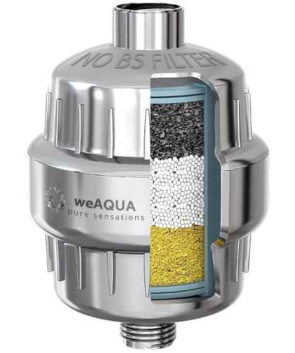 Transform your daily shower into a powerful purification ritual with the WeAQUA NO BS Family Shower Filter — a complete high-output shower water filtration system designed to fight back against chlorine fluoride lead iron sediments and other harmful substances hiding in your tap water. This universal showerhead filter is made for families who want a cleaner smoother and healthier showering experience — with no complicated installation no pressure drop and no marketing fluff. Built from durable materials with a sleek polished finish it’s easy to install by hand in minutes using standard 1/2"" thread — compatible with wall-mounted rainfall and handheld systems. Infused with advanced filtration media including activated carbon KDF calcium sulfite and microporous beads this multi-stage water purifier helps remove up to 99% of toxins while balancing pH and restoring skin and hair health. Great for sensitive skin dry hair or those experiencing itchiness dandruff or irrit