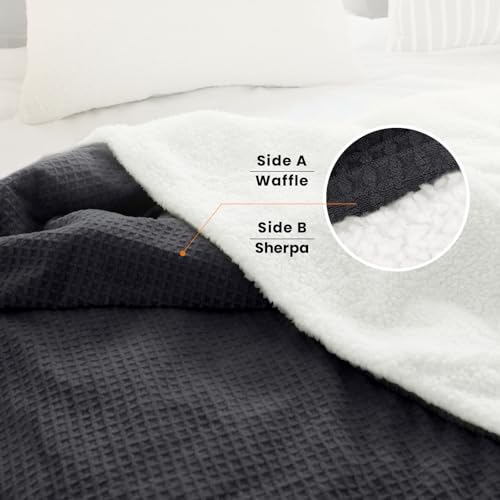 Heated Blanket Electric Blanket King Waffle 90x100 Inches Dual Controllers Sherpa Fleece Fast Heating Blanket 6 Heating Levels & 10 Hours Auto Off ETL Certification Charcoal Ash King