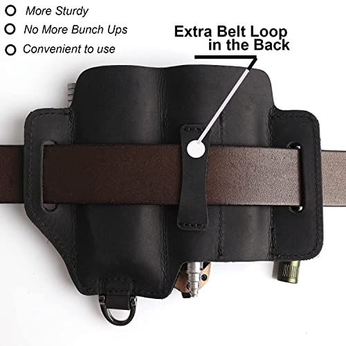 Topstache Leather Multitool Sheath with Belt Clip - Multitool Holster for Belt - EDC Belt Organizer Fits Multitool Flashlight Pen - Leather Multitool Pouch - Leather Multitool Holder