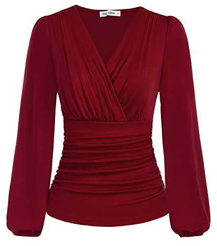 Dokotoo Womens Tops Dressy Casual 2025 Trendy V Neck Loose Long Sleeve Shirts Hollow Out Lace Top Embroidered Blouses Shirts Business Spring Summer Outfits Clothes Ladies Tops (Purple Large)