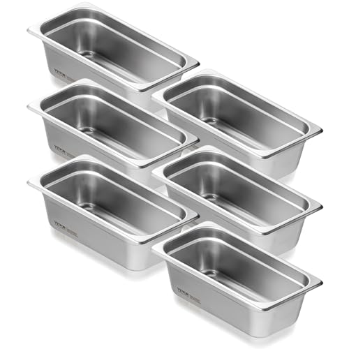 VEVOR 6 Pack Hotel Pans 1/3 Size Anti-Jam Steam Pan 0.8mm Thick Stainless Steel Restaurant Steam Table Pan 4-Inch Deep Commercial Table Pan Catering Storage Food Pan for Industrial & Scientific Price in USA