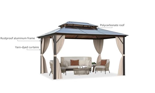 Aoxun 10'x12' Hardtop Gazebo Aluminum Frame Canopy with Doub...