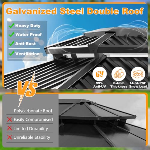 EROMMY 10' x 13' Gazebo Polycarbonate Double Roof Canopy Out...