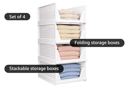 CTSNSLH 4 Pack Folding Closet Organizers Storage Box Stackab...