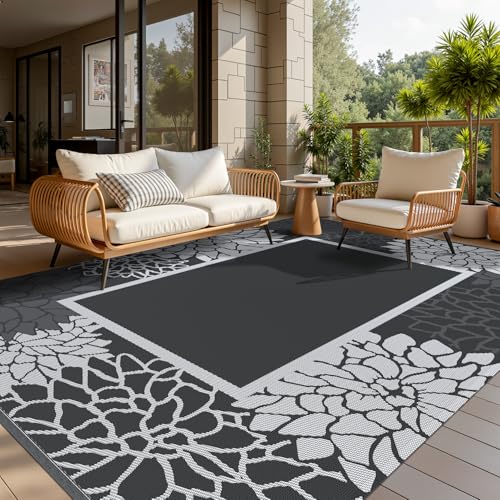 Smiry Waterproof Outdoor Rug 5x8 ft Reversible Plastic Straw Patio Camping Rugs Outdoor Indoor RV Mat Carpet for Patio Outside Entry Backyard Deck Bench Picnic Camper Black & Beige Price in USA