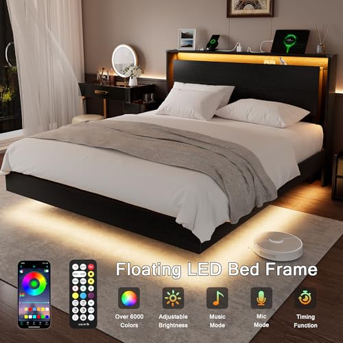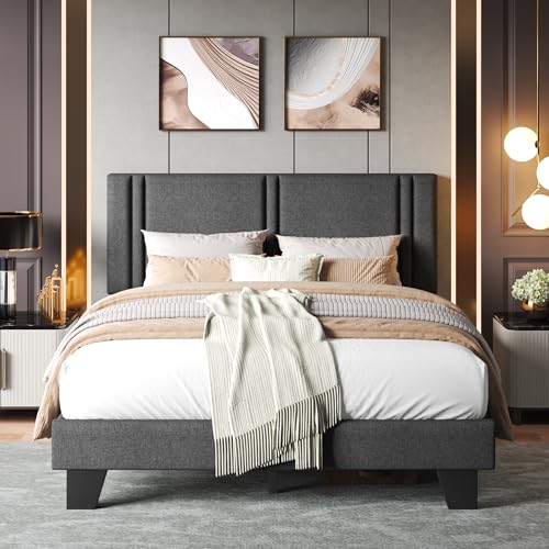 Einhomn Upholstered Full Size Bed Frame with Wingback Headboard Linen Fabric Platform Beds 8"" Under Bed Space Wooden Slats Support No Box Spring Needed Easy Assembly Noise-Free Light Grey Price in USA