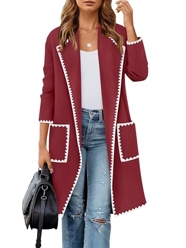 ZESICA Women's Open Front Long Cardigan Sweater Casual Lapel...