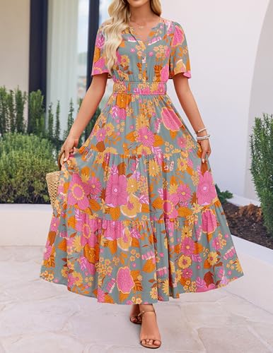 ZESICA Women's Summer Boho Floral Midi Dresses 2025 Casual S...