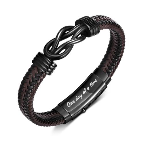 VNOX Love Knot Bracelet Gifs for Men - Handmade Braided Leather Bracelets for Men Brown Leather Cuff Bracelet with Infinity Knot Gifts Mens Christmas Birthday Gift Ideas One day at a time Price in USA