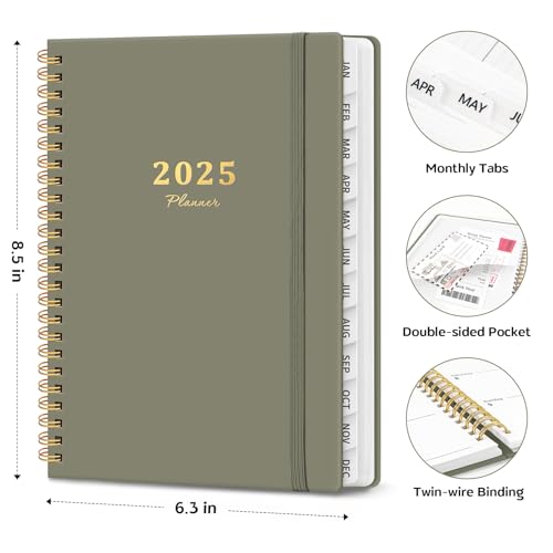 Elevate your planning with ZOTIA's Comprehensive 2025 Planner the ultimate tool for mastering organization and efficiency. Spanning 12 months from January to December this sleek planner features a clear layout designed to seamlessly balance school work and personal life. Each month starts with a clear calendar and an inspiring quote followed by detailed weekly spreads. With ample space for tasks goals and assignments you'll stay on top of everything with ease. Marked holidays and monthly tabs simplify planning. Its suitable size (6.3\" x 8.5\" x 0.6\") make this 2025 planner your go-to companion for a productive year. Double-spiral binding and an elastic closure ensure portability and durability. This 2025 weekly and monthly planner is perfect for professionals students or anyone seeking organization.