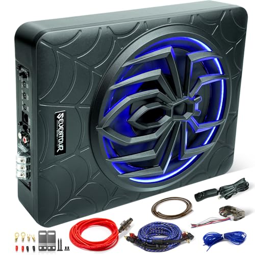 Seventour 10"" 1000W Slim Under Seat Powered Car Subwoofer C...
